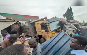 Asamankese, Ghana – August 6, 2025 – A devastating accident occurred in Asamankese on Wednesday, August 6th, leaving at least one person dead and several others injured after a tipper truck lost control and plowed into shops near the Dukes Filling Station. The incident caused significant destruction, leaving residents in shock and emergency responders scrambling to assist victims.
