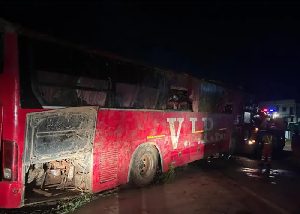 Firefighters, commanded by ADO II Samuel Mensah, arrived on the scene and discovered a VIP bus (GW 8455-23) and a Benz Sprinter (GS 6383-20) engaged in an accident. The Sprinter was entirely demolished from the rear, while the VIP bus was partially damaged on the front.