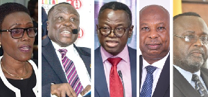 From L to R: Justices Baffoe-Bonnie, Omoro Tanko, Yonny Kulendi, Gabriel Pwamang, and Lovelace-Johnson