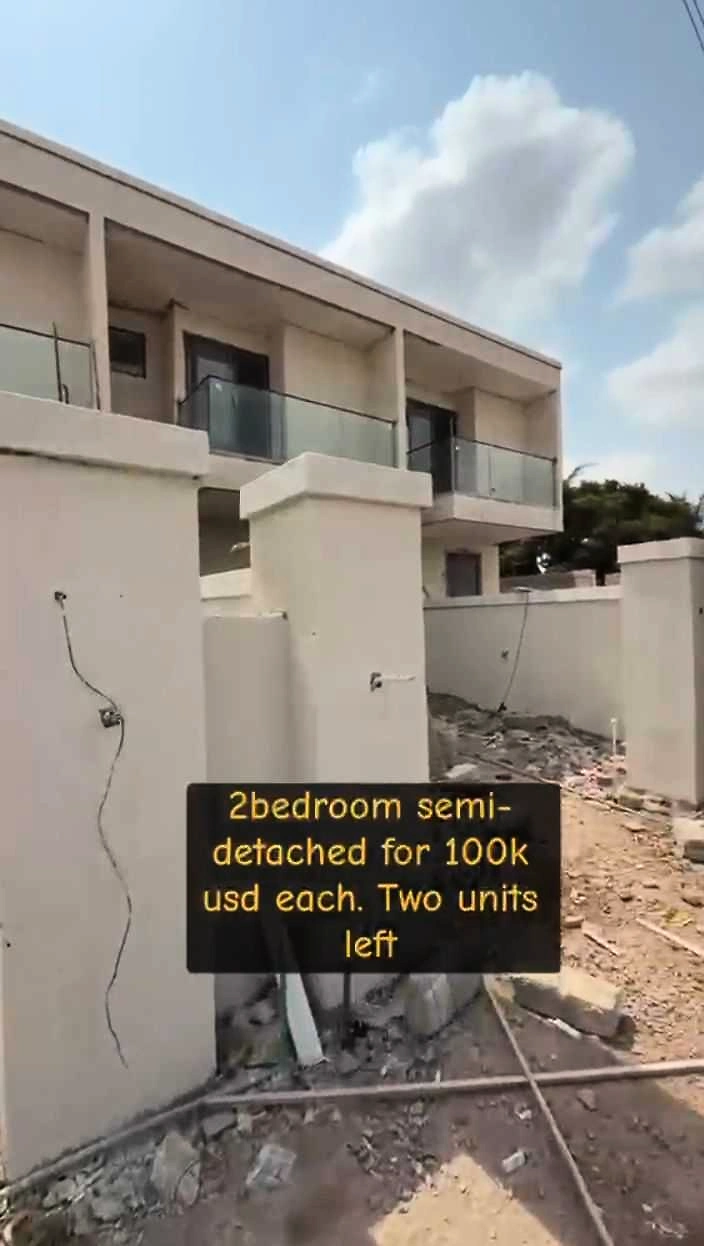 2 bedroom semi-detahced house for sale in gated community. Project are fast in progress to be completed in less that 3 months. If interested, it's important you make your deposit now, else, all will be sold before completions. Location: Ashley Botwe school junction, closer to east legon. Price: 100k USD Please note: 5% agent commission value of property shall be paid by BUYER after successful transactions Ghc 200 agent transportation to and fro site